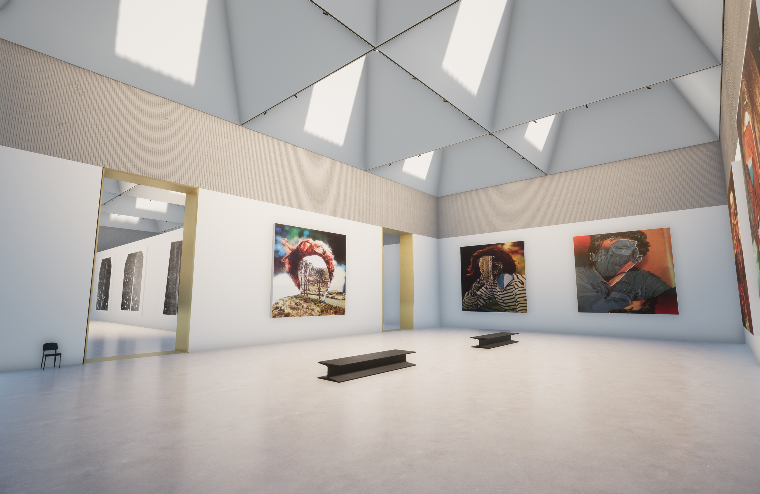 Rather than approaching the gallery as a series of rooms filled with screens, the design focuses on spatial experience. Large atrium volumes anchor the building, creating moments of pause and orientation as visitors move through the gallery.